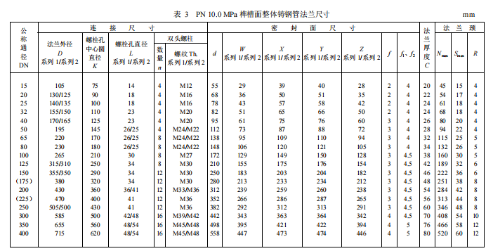 本標(biāo)準(zhǔn)適用于公稱(chēng)壓力 PN4.0~10.0 MPa 的榫槽面整體鑄鋼管法蘭。