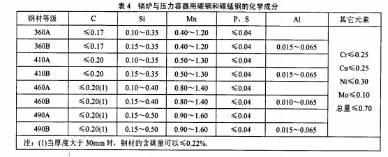 中國船舶工業(yè)一直沿用GB568.1965到 GB583.1965這一系列由原蘇聯(lián)標準演化來的法蘭 國家標準,幾十年也沒人對它們進行深入研究.這一 系列法蘭國家標準在1999年時大部分轉(zhuǎn)化為船舶 行業(yè)標準,但內(nèi)容不變,cB/T47—1999《船用對焊 鋼法蘭》就是其中之一(替代GB574—1965),這些 標準主要用于艦船和沿海小型船舶上.1989年編制 的一系列符合國際標準ISO 2084:1974《管路法蘭 一般應(yīng)用米制系列公稱尺寸》(已被IS0700一1: 1992,IS07005.2:1988,IS07005—3:1988代替)的 法蘭國家標準用材料也沿用了GB568—1965~ GB583—1965規(guī)定的材料,這些標準主要用于遠洋船 和出口船上. 中國船級社材料與焊接規(guī)范(2006年版)規(guī)定 了鍋爐壓力容器、管系附件用碳鋼和碳錳鋼化學(xué)成 分、力學(xué)性能,摘錄見如下表4和表5.