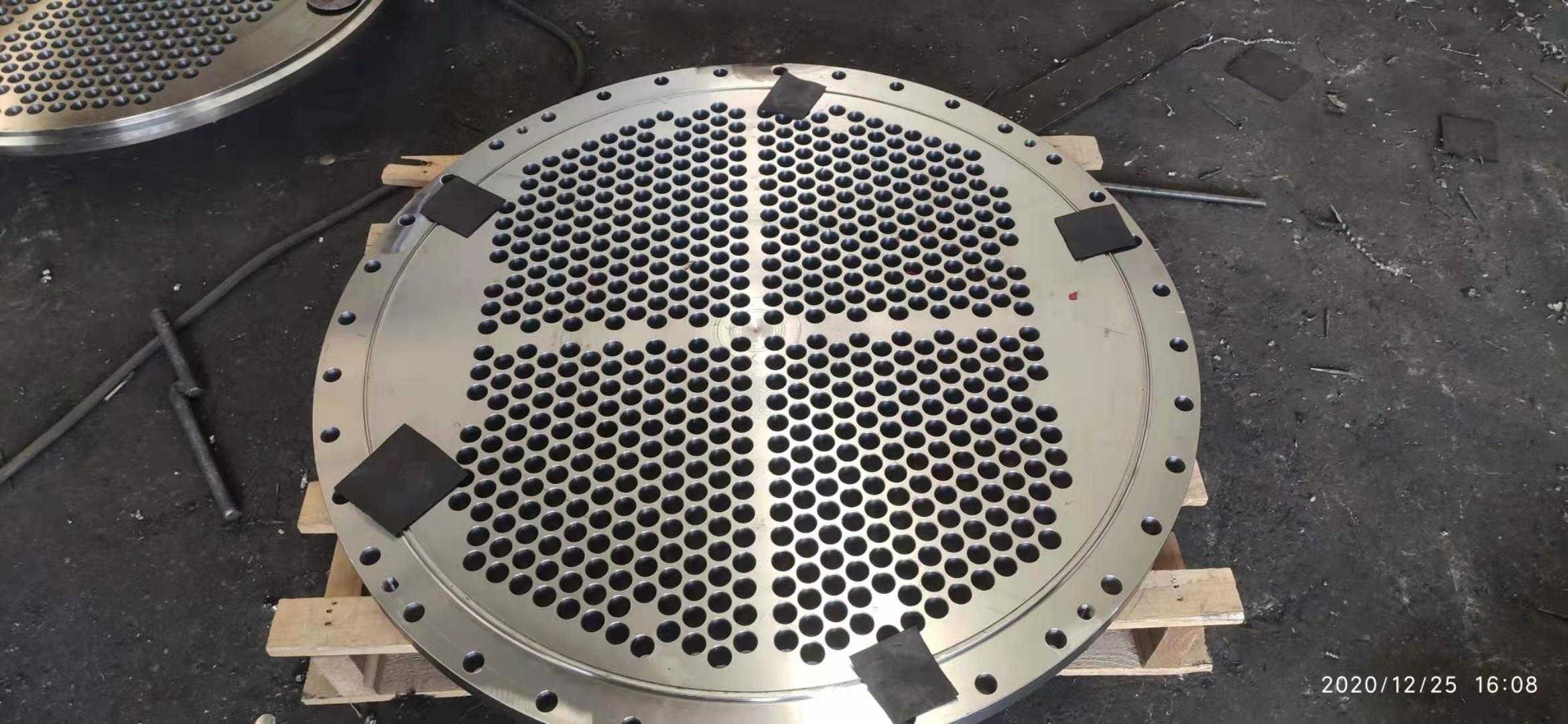 管板,是在圓形鋼板上鉆出比管子外徑一樣略大一些的孔,是換熱器中起到固定管子以及密封介質(zhì)作用的圓鋼。將管子穿入焊住固定,起這樣作用的一種配件。