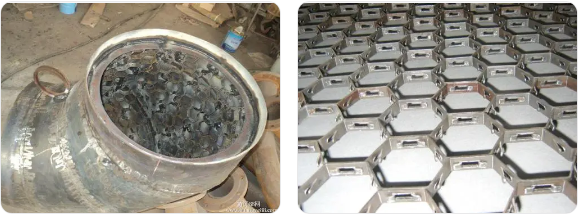 龜甲網(wǎng)耐磨三通產(chǎn)品,是以鋼板、鋼管為基體,內(nèi)里焊接鋼制龜甲網(wǎng)為骨架,將內(nèi)襯耐磨陶瓷混合料涂抹在管件內(nèi)壁,我公司改變了同行業(yè)中傳統(tǒng)人工涂抹的制造工藝,自主研發(fā)了振動(dòng)滾軸擠壓機(jī),解決了因人工涂抹操作出現(xiàn)的沙眼、氣孔、接縫裂紋等難題,避免了滲漏、腐蝕、卸塵現(xiàn)象的發(fā)生,耐磨陶瓷龜甲網(wǎng)產(chǎn)品具有結(jié)合強(qiáng)度高、致密性強(qiáng)、耐高溫、耐磨損等性能特點(diǎn)。