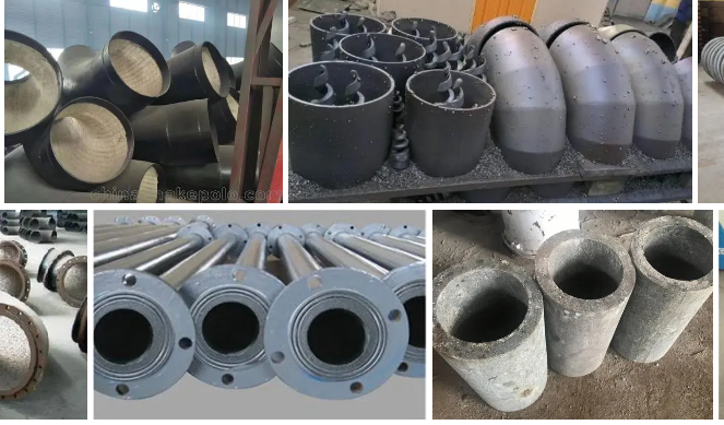 由于碳化硅管道的燒結(jié)后,附著在碳鋼管道上 的耐磨層較厚,因此在保證管道的公稱直徑的同時(shí), 管道外壁尺寸將大于一般國家標(biāo)準(zhǔn)。建議廠家在管 道配用的法蘭制作上盡量參照國家標(biāo)準(zhǔn)。例如:短 節(jié)兩片法蘭的對開螺栓孔軸線需要與管道軸線平 行。