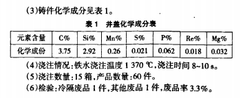 ④球鐵井蓋是薄壁件,而且是潮模鑄造,終硅含量應(yīng)偏高,應(yīng)控制在2.6%<Si<3.0%。