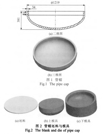 管帽廣泛應(yīng)用于石油、化工管路和電站管網(wǎng)中, 管帽質(zhì)量的好壞將直接影響到整個管網(wǎng)系統(tǒng)的完整 性及安全性【”。隨著高壓、大口徑、長距離輸送管道 的不斷應(yīng)用,對管帽等管件的力學(xué)性能要求越來越 高。本文通過DEFORM一3D有限元成形分析軟件。 對管帽熱成形的坯料加熱溫度與尺寸進(jìn)行模擬研 究,獲得了管帽熱成形坯料最佳的加熱溫度與尺寸。 為解決管帽熱成形工藝設(shè)計和實際生產(chǎn)中的難題提 供依據(jù)。