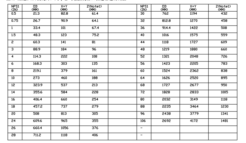 這個圖紙中還有其他型號的斜三通的尺寸規(guī)格是這樣的: